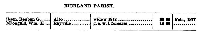 McDougald, Wm. H., Rayville, g.s.w.* L forearm, $18.00, no dates